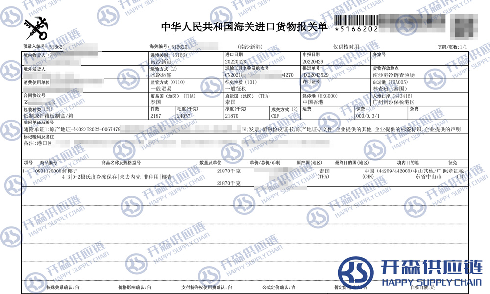 一、泰國(guó)鮮椰子進(jìn)口報(bào)關(guān)代理案例詳情